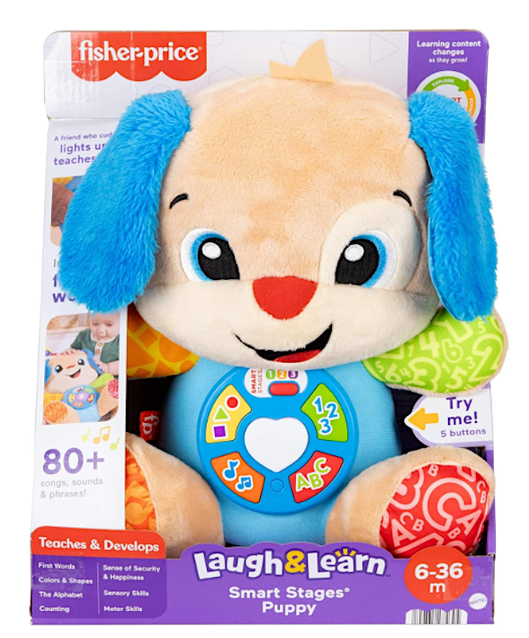 Il Cagnolino Ridi e Impara di Fisher-Price è il morbido compagno educativo che accompagna i bambini dai 6 mesi ai 3 anni nella scoperta delle prime parole e dei concetti base. Con oltre 80 canzoni, suoni e frasi, luci interattive e i 3 livelli di apprendimento Smart Stages, cresce insieme al bambino, adattandosi al suo sviluppo.