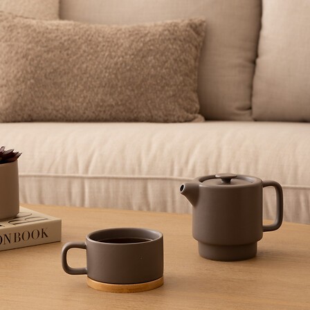 Concediti una pausa calda e rilassante con il servizio da tè singolo Nature di Atmosphera. Realizzato in ceramica dal delicato colore talpa, questo set unisce semplicità ed eleganza naturale. Perfetto per accompagnare i tuoi momenti di relax, racchiude tutto il necessario per gustare un tè in solitaria con stile.