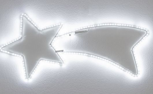 La Stella Cometa lunga 65cm con 192 LED Bianco è una decorazione natalizia perfetta per creare un'atmosfera festosa e luminosa in ogni ambiente. Il telaio è realizzato in metallo verniciato bianco, mentre i 192 LED sono distribuiti su 2 metri di strip, offrendo un'illuminazione intensa e brillante.