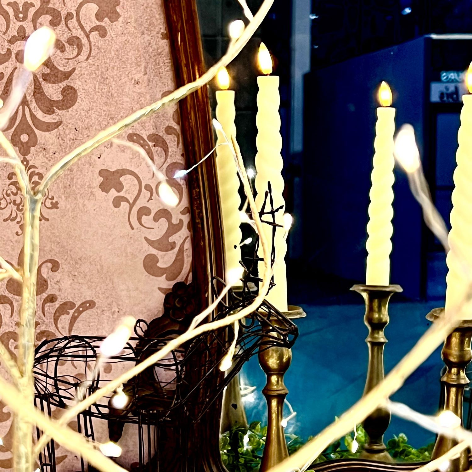 Set 2 Candele di Natale Taper a Spirale, La Magia di Natale con Fiamma 3D