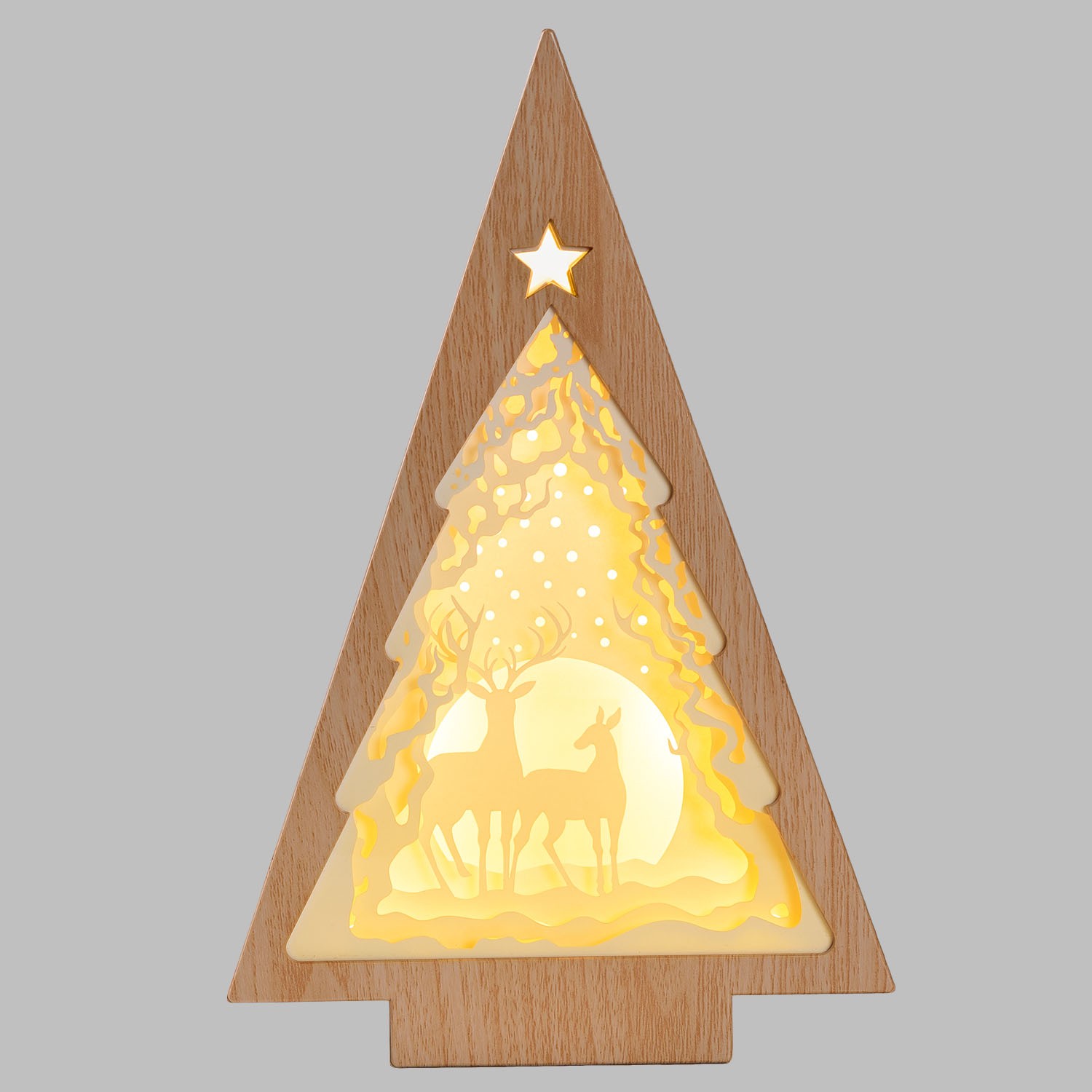 Albero di Natale luminoso Papercut Silhouette H25cm con effetto legno decorativo