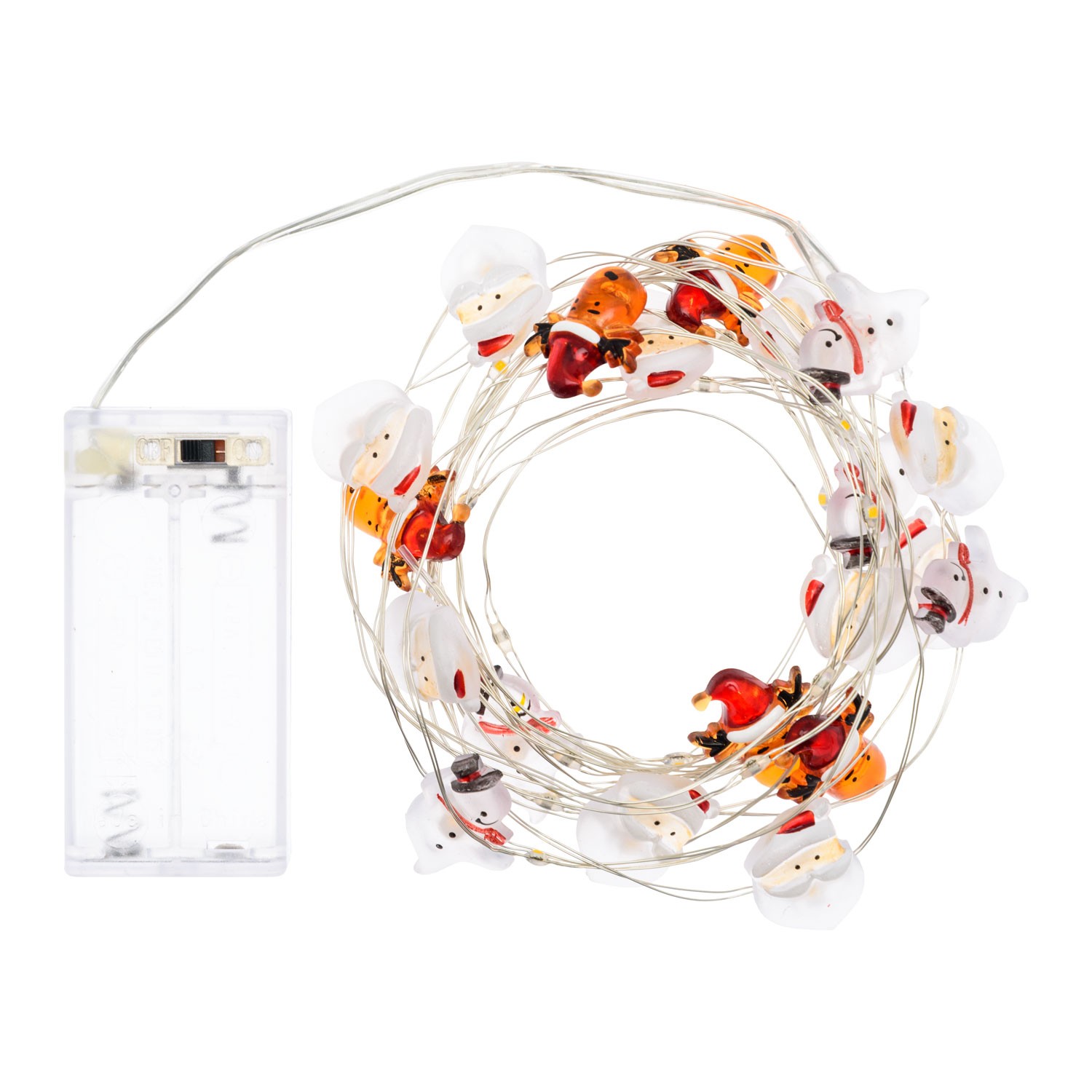 Catena di Natale Decorata D4 4m, 40 MicroLED Bianco Caldo, Babbo Renna Pupazzo 3D, Cavo Argento, Batteria