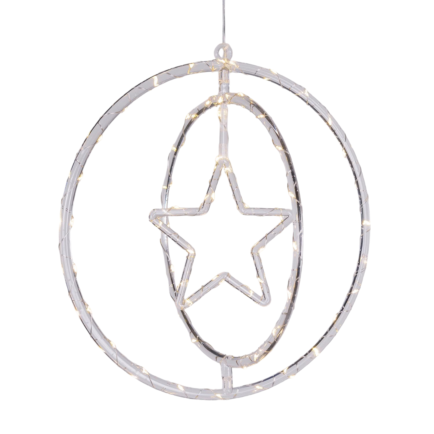 Decorazione di Natale ø32cm PGS Crystal, Mix3 Soggetti Stella Fiocco Albero, MicroLED Bianco Caldo, Timer 8h, Batteria ASSORTITO