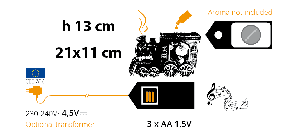 Aroma Diffuser di Natale Trenino 21cm, LED Bianco Caldo e Color, Music, 3 Funzioni, Batteria o Trasformatore