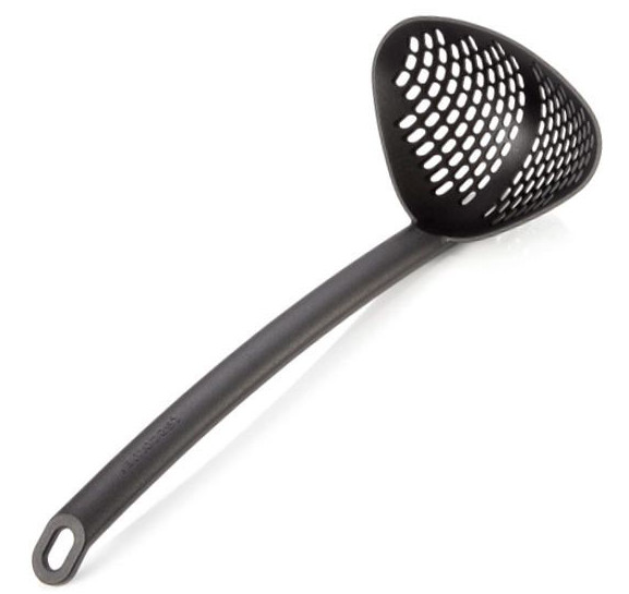 Grazie al suo design intelligente, questo mestolo ti permette di raccogliere facilmente gli alimenti, scolandoli con precisione direttamente dai liquidi di cottura. Le sue dimensioni ottimali (lunghezza di 29,5 cm) lo rendono perfetto per raggiungere anche i punti più difficili delle pentole e per lavorare con pentolame di varie grandezze. Inoltre, la sua struttura in nylon è altamente resistente al calore, il che significa che potrai utilizzarlo con zuppe bollenti, fritti appena scolati o sughi in ebollizione senza preoccuparti di danni o deformazioni.