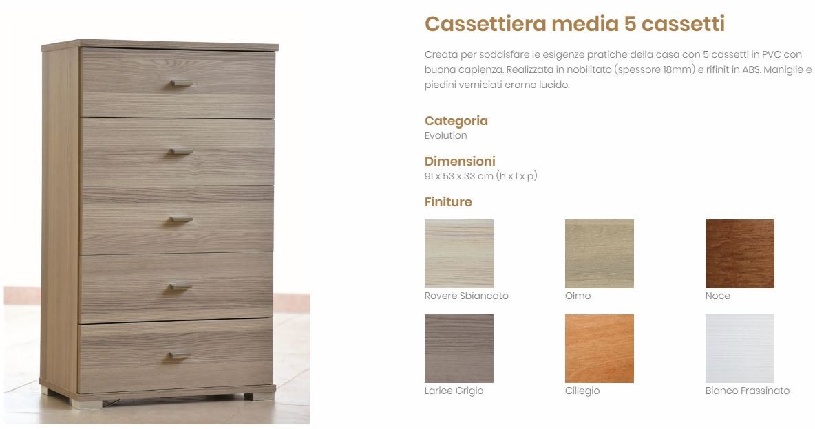CASSETTIERA F2090 MEDIA 5 CASSETTI ROVERE SBIANCATO
