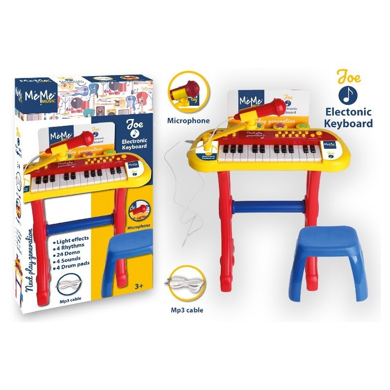 La Tastiera 24 Tasti con Sgabello e Microfono Joe di Pretty Mate Industries è il giocattolo musicale ideale per i bambini che desiderano esplorare il mondo della musica. Dotata di 24 tasti colorati, questa tastiera è perfetta per i principianti e offre un design accattivante che cattura l'attenzione dei più piccoli. Il set include uno sgabello regolabile per il massimo comfort e un microfono incorporato che amplifica la voce, permettendo ai bambini di cantare e divertirsi con effetti karaoke. La tastiera presenta funzioni aggiuntive come suoni di strumenti, ritmi e canzoni preregistrate, oltre alla possibilità di registrare le proprie composizioni. Alimentabile con batterie o con un adattatore (non incluso), è una scelta versatile e pratica per ogni piccolo musicista.