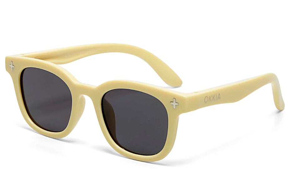 Prodotto: Orlando Okkialini Bambino colore Crema, occhiali da sole polarizzati con montatura flessibile.
