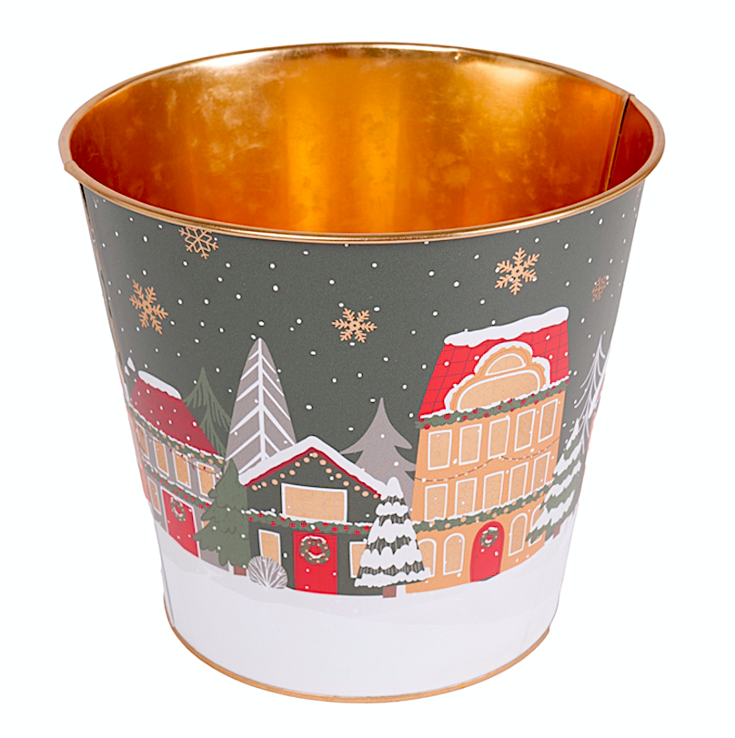 Decorazione cachepot di Natale verde 18x17cm in metallo con paesaggio - La magia di Natale a casa tua