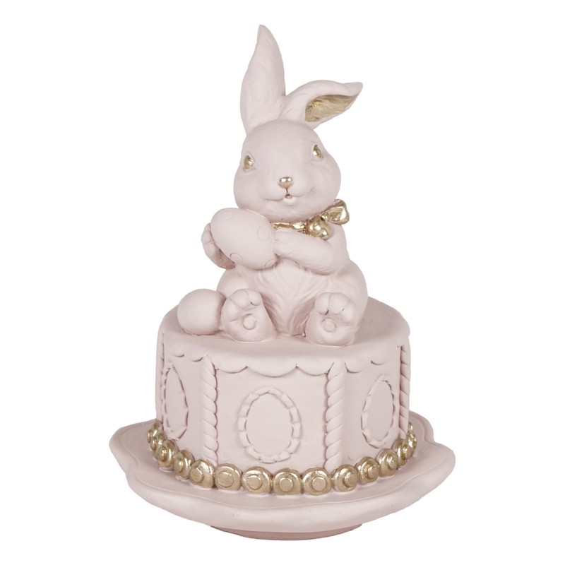 CONIGLIO 137899 SU TORTA ROSA/ORO 17CM RESINA