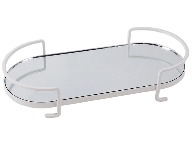 VASSOIO 140295 METALLO BIANCO CON SPECCHIO 36X16X7CM