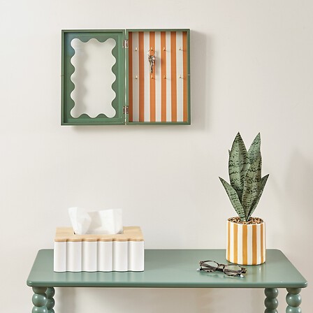 La scatola portachiavi Chéri unisce funzionalità e stile grazie al suo design raffinato e compatto. Con dimensioni di 20 x 6,6 x 30 cm, è realizzata in MDF E1 di alta qualità e vetro, garantendo robustezza e durata. Il colore multicolore dona un aspetto allegro e moderno, perfetto per ogni ambiente domestico. Questo prodotto della collezione Chéri Cherry è ideale per organizzare le chiavi con eleganza, mantenendo ordine e praticità.