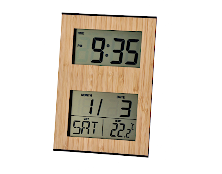 Orologio sveglia digitale LCD in bamboo/plastica 15 x 31 cm