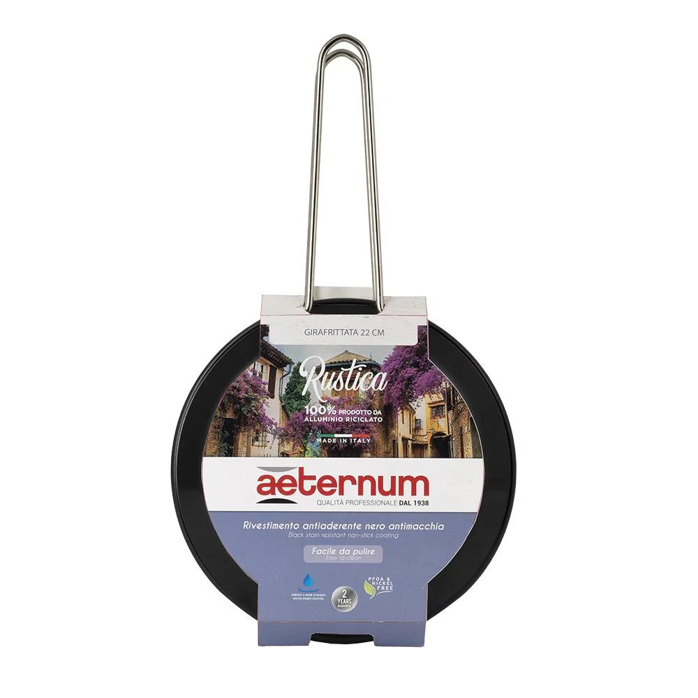 Girafrittata Rustica Aeternum da 22 cm in alluminio antiaderente, versatile e pratica per preparazioni multiple. Ideale per frittate, pesce, pasta o verdure grigliate. Le due padelle, unite dallo speciale incastro, permettono di girare la frittata in sicurezza e facilità. Possono essere utilizzate anche separatamente come padelle singole.