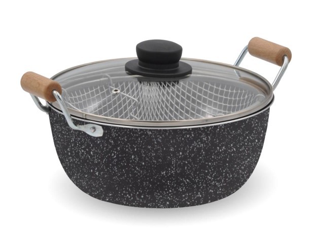 I manici ergonomici garantiscono una presa salda e sicura, mentre il coperchio in vetro temperato consente di monitorare la cottura senza doverlo sollevare. Questa pentola per friggere con cestello è perfetta per preparare patatine dorate, crocchette sfiziose e tempura leggera senza sforzo!