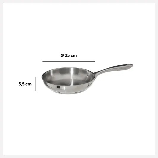 - Prodotto: Padella 24 cm in acciaio inox, ideale per cotture uniformi e veloci.