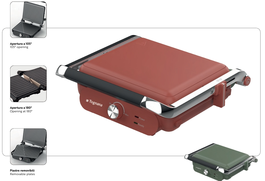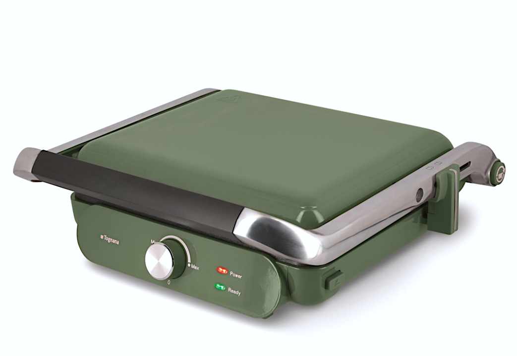 La bistecchiera elettrica verde salvia con piastre antiaderenti rimovibili combina funzionalità e stile per una cottura perfetta di carne, pesce, verdure e altro ancora. Le piastre di grandi dimensioni (280x230 mm) assicurano una cottura uniforme, mentre il regolatore di temperatura e il termostato permettono un controllo preciso del calore. Grazie all’apertura a 105° o 180°, può essere utilizzata come piastra tradizionale o grill aperto. Dotata di maniglia antiscottatura, spie di funzionamento e vaschetta raccogli grasso estraibile, unisce praticità e sicurezza. Pulizia semplice grazie alle piastre lavabili in lavastoviglie.
