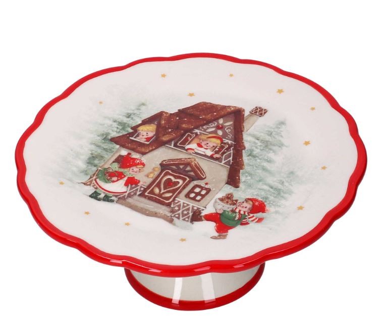 ALZATA CERAMICA ROSSO/BIANCO 22X10CM DECORO NATALIZIO