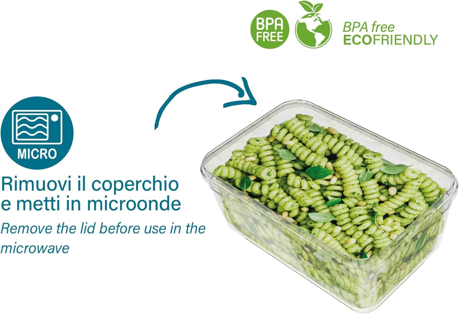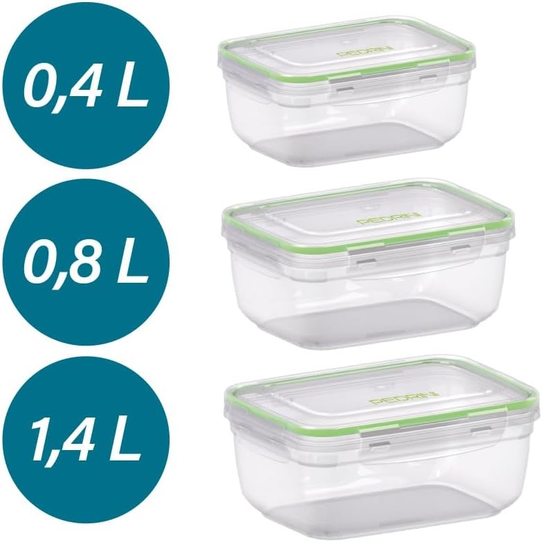 Il set Pedrini 04GD312 di contenitori rettangolari offre una soluzione versatile e pratica per conservare cibi freschi più a lungo e organizzare lo spazio in dispensa, frigorifero o freezer. Grazie alle capacità differenziate di 400 ml, 800 ml e 1.400 ml, è ideale sia per piccole porzioni che per pasti più abbondanti, permettendo di gestire in modo efficiente la preparazione e il trasporto del pranzo, della merenda o di snack. La chiusura ermetica robusta garantisce la massima sicurezza nella conservazione degli alimenti, evitando fuoriuscite di liquidi e contaminazioni con altri cibi, e preservando sapori e proprietà nutrizionali.