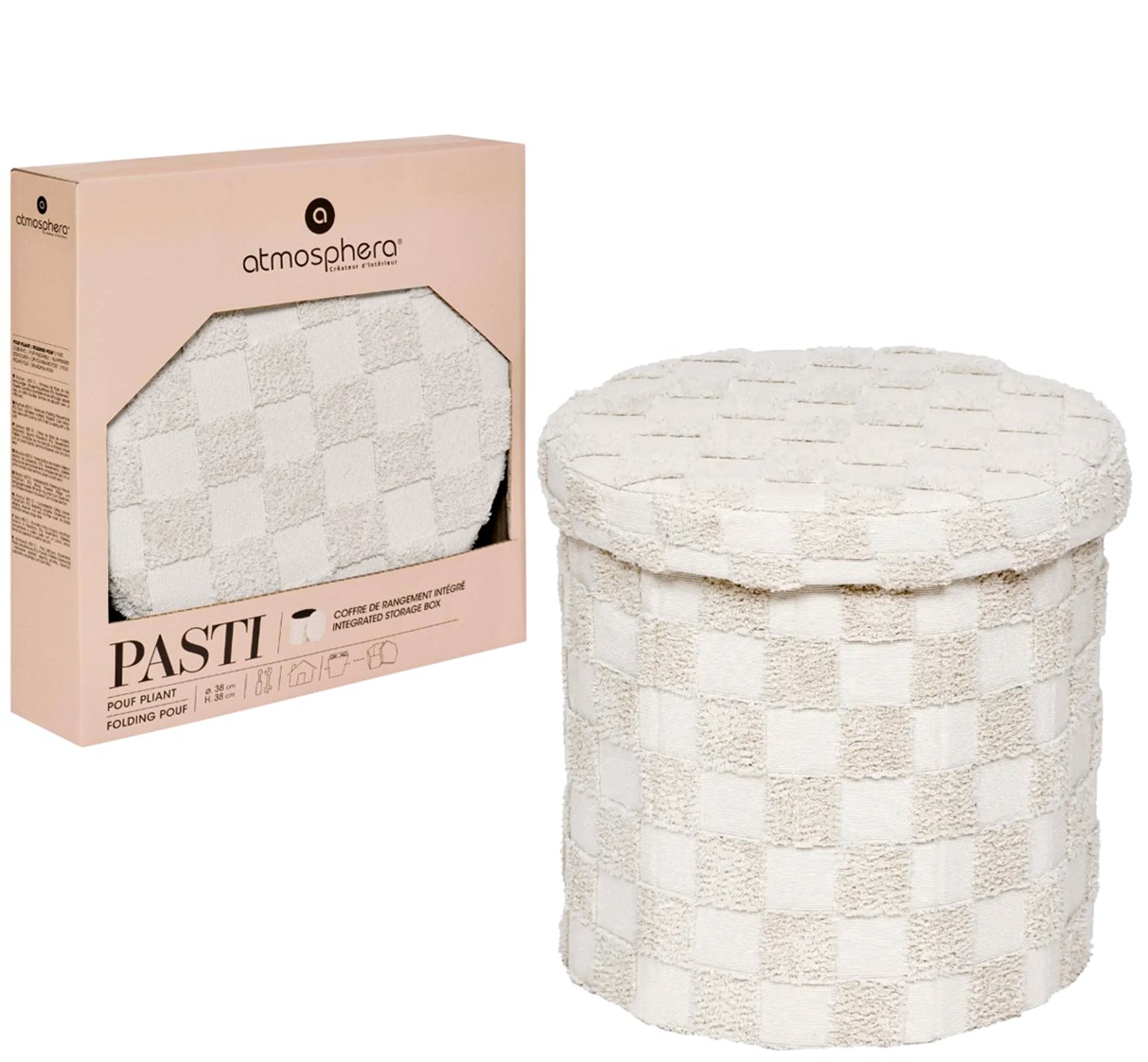 Il pouf pieghevole Pasti è un complemento d’arredo versatile e funzionale, perfetto per chi cerca praticità senza rinunciare allo stile. Con un diametro di 38 cm e un elegante rivestimento tufté bianco, questo pouf è realizzato con materiali di alta qualità, MDF E1 e poliestere, che assicurano durata e comfort. La sua caratteristica pieghevole permette di risparmiare spazio quando non in uso, rendendolo ideale per soggiorni, camere da letto o zone living. Viene consegnato in una confezione stampata aperta, pronta per essere esposta o regalata.