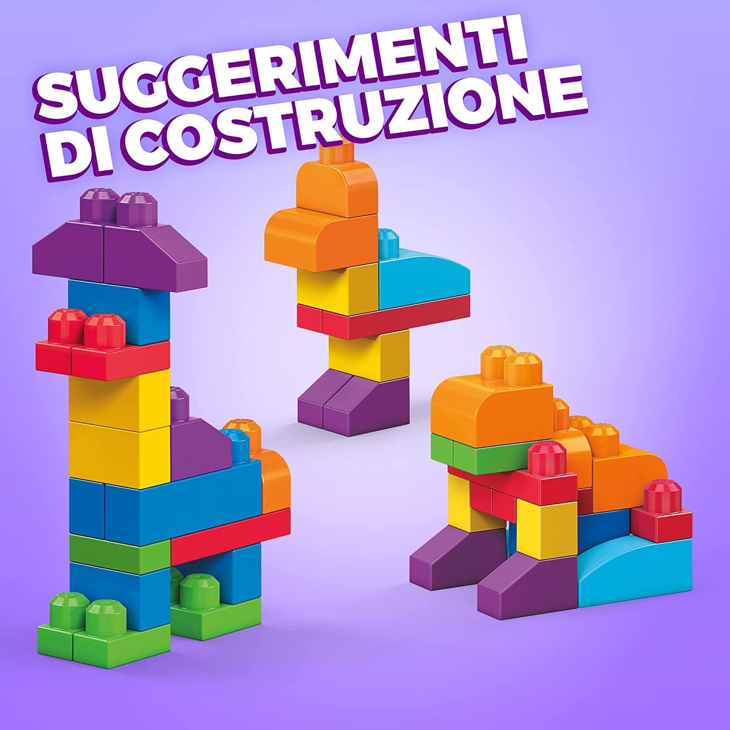 sogni. I mattoncini sono abbastanza grandi per essere afferrati dalle loro piccole mani. Quando si finisce di giocare, si possono riporre facilmente i mattoncini nella nuova sacca ecologica, priva di PVC. Nella confezione: 60 blocchi di costruzioni.