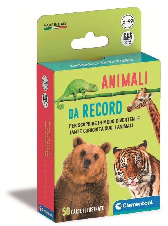 Scopri il gioco di carte "Animali da Record", perfetto per i bambini appassionati di natura e curiosità sugli animali. Questo entusiasmante gioco include 50 carte in cartone robuste e colorate, ognuna illustrata con immagini vivaci di animali e le loro caratteristiche uniche.