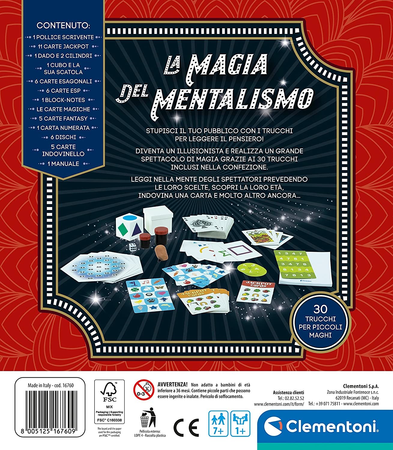 Scopri il mondo del mentalismo con il **gioco di magia "Mentalismo" di Clementoni**! Questo set innovativo introduce i bambini al fenomeno del momento, offrendo un'esperienza magica unica. Il gioco permette di eseguire trucchi affascinanti come trovare la carta memorizzata da uno spettatore, pronosticare una parola scelta e realizzare calcoli mentali impossibili. Il **manuale illustrato** incluso guida passo dopo passo, rendendo facile per i bambini imparare e perfezionare le loro abilità magiche. Ideale per divertirsi con amici e familiari, questo set è consigliato per **bambini dai 7 anni in su**. Prodotto in Italia, il **set di trucchi di magia "Mentalismo"** offre un mix di divertimento e apprendimento, stimolando la creatività e la manualità. Con **accessori di alta qualità** e un design pensato per i piccoli illusionisti, è il regalo perfetto per chi ama sorprendere e incantare.