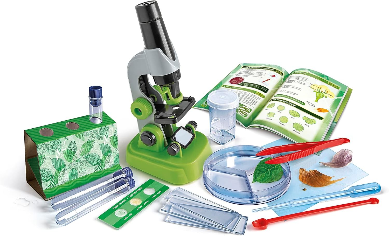 Il kit include strumenti da laboratorio come vetrini pronti all’uso, bicchierini, pipette statistiche e piastre Petri, per realizzare esperimenti elementari ma affascinanti. L’approccio è didattico, ma non rinuncia al gioco: ideato per piccoli esploratori, può essere utilizzato facilmente anche senza alcuna esperienza scientifica. Interamente progettato e prodotto in Italia, offre qualità, sicurezza e un’esperienza educativa completa all’interno di una confezione compatta e leggera.
