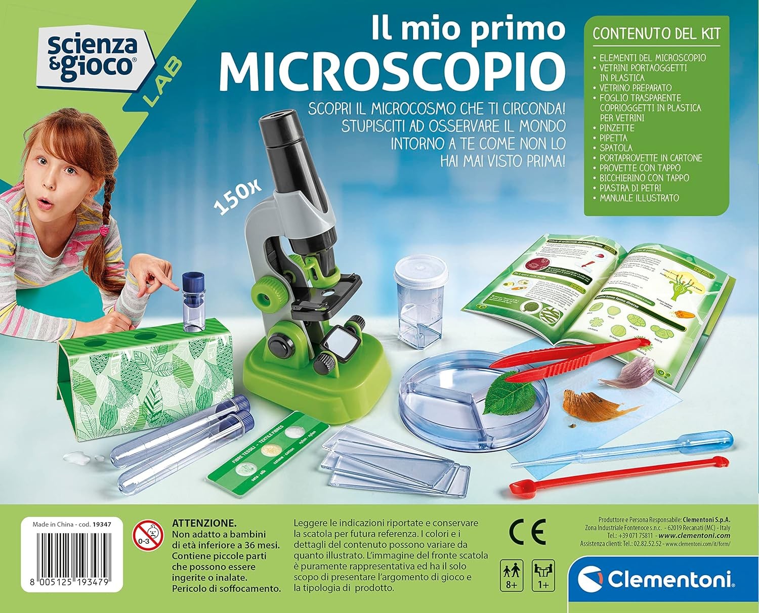 Il set “Il Mio Primo Microscopio” di Clementoni fa parte della linea Science & Play ed è pensato per stimolare la curiosità scientifica nei bambini a partire da 8 anni. Il vero microscopio portatile permette di osservare oggetti di uso quotidiano con un ingrandimento fino a 150×, aprendo le porte del microcosmo con sorprendente nitidezza. Il manuale illustrato accompagna passo dopo passo nelle prime osservazioni scientifiche, da quelle più semplici a esercizi coinvolgenti e istruttivi.