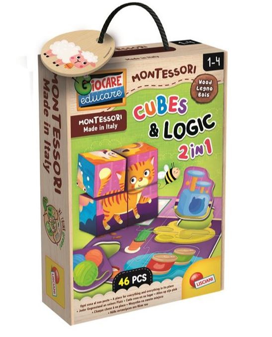Il Lisciani Giochi Montessori Wood Cubes and Logic è un gioco educativo ideale per esercitare la logica e la creatività nei bambini. Il set comprende 4 cubi in legno, 6 puzzle degli animali e 18 elementi sagomati che i bambini possono utilizzare per creare e completare vari puzzle. Con 6 cartelle e istruzioni dettagliate, il gioco stimola lo sviluppo sensoriale, l'autonomia e la coordinazione occhio-mano, rendendolo perfetto per un apprendimento divertente e interattivo.