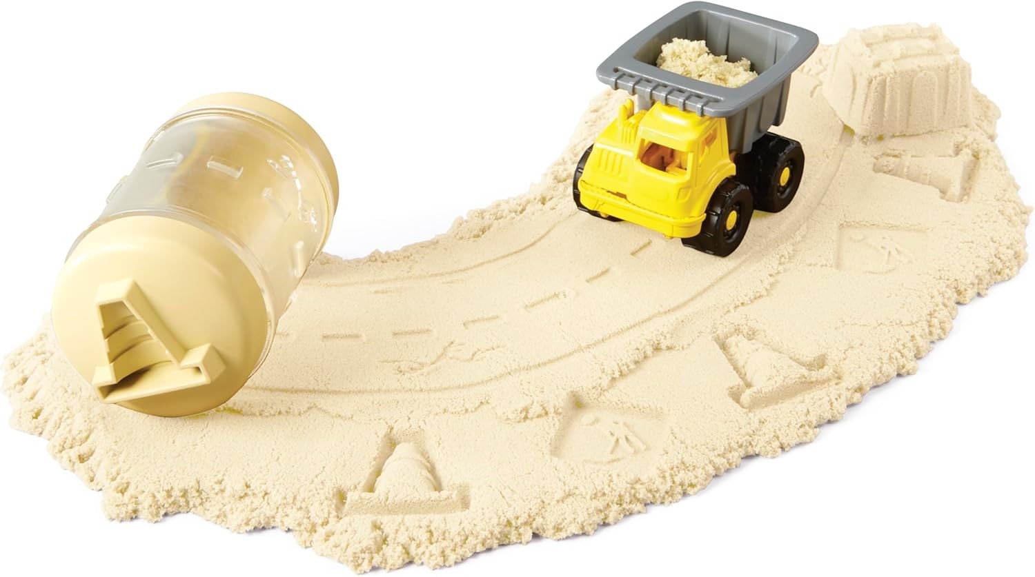 La sabbia speciale è cinetica, non secca mai e mantiene sempre una consistenza soffice e compatta, perfetta per scavare, costruire e trasportare materiali con il camion incluso.