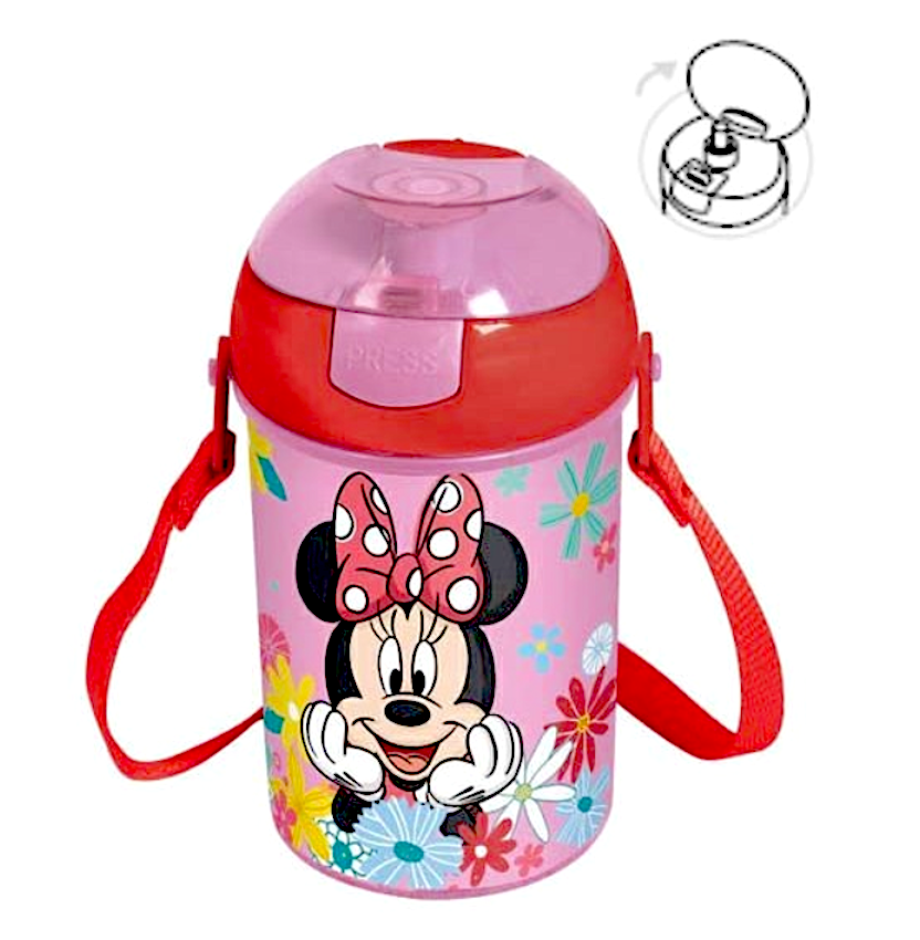BORRACCIA POP-UP 450ML IN PLASTICA ROSA MINNIE CON TRACOLLA, PER BAMBINI