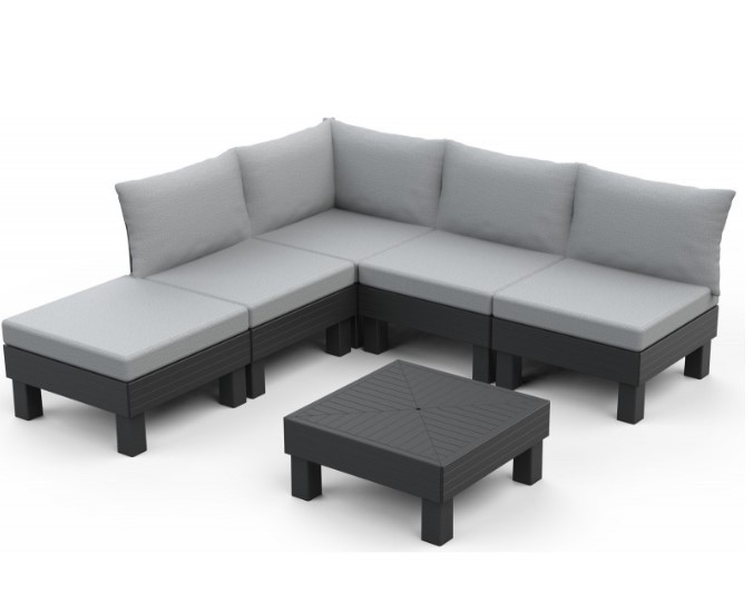 Il set lounge Elements di Keter è ideale per chi desidera arredare l’esterno con stile e massima flessibilità. Grazie al design modulare, puoi configurare il divano a L o separare gli elementi in base alle occasioni, adattandoli facilmente a spazi di diverse dimensioni. Le ampie sedute con cuscini in polibavlina garantiscono comfort e accoglienza per momenti di relax, compatibilmente con pochissima manutenzione.