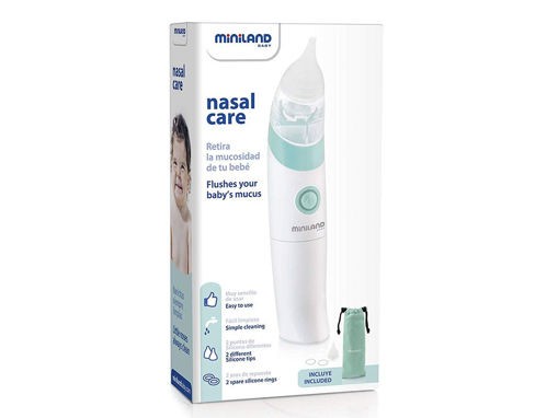 L'aspiratore nasale elettrico Miniland Nasal Care è progettato per rimuovere delicatamente l'eccesso di muco, alleviando il fastidio causato dalla congestione nasale nei neonati. Facile da usare, basta inserirlo nella fossa nasale e premere il pulsante per aspirare il muco in modo rapido e indolore. Il suo design compatto ed ergonomico permette di utilizzarlo con una sola mano, lasciando l'altra libera per posizionare correttamente il neonato. Il dispositivo è discreto e adatto anche per l'uso in pubblico, senza generare imbarazzo. Il contenitore del muco è facilmente rimovibile, lavabile e sterilizzabile, mantenendo il dispositivo igienico. Include due punte di silicone di dimensioni diverse per adattarsi alle necessità del bambino e due anelli di silicone di scorta.