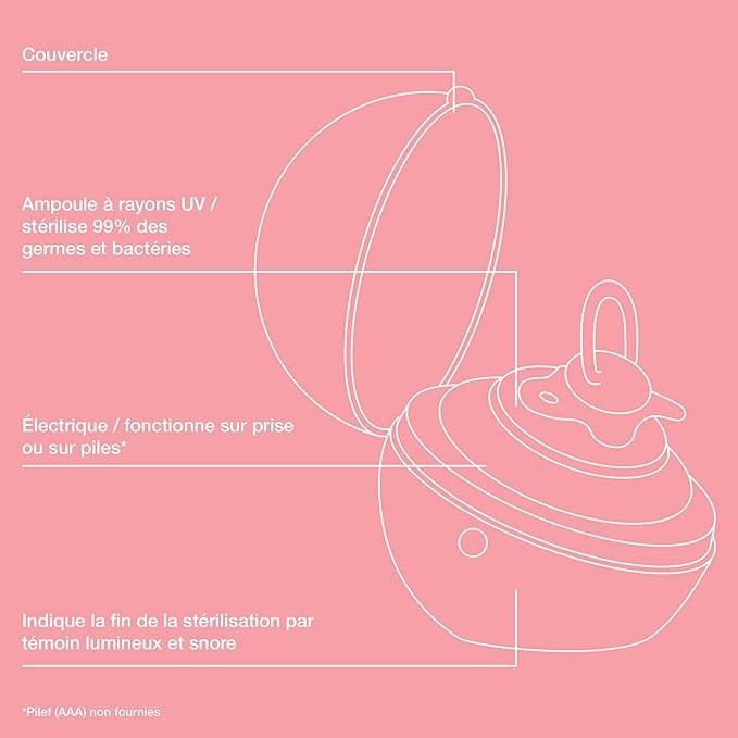 - Igiene Sicura: Sterilizza senza l’uso di sostanze chimiche, ideale per garantire la pulizia dei succhietti.