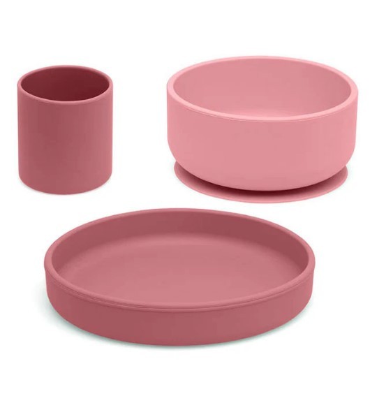 Set Piatti 3 Pezzi in Silicone Rosa - Pratici e Sicuri per Bambini