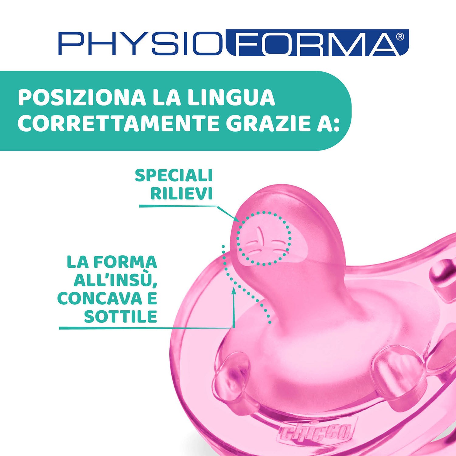 Succhietto Gommotto Physio Soft Silicone Chicco 6-12M – Rosa e Lilla