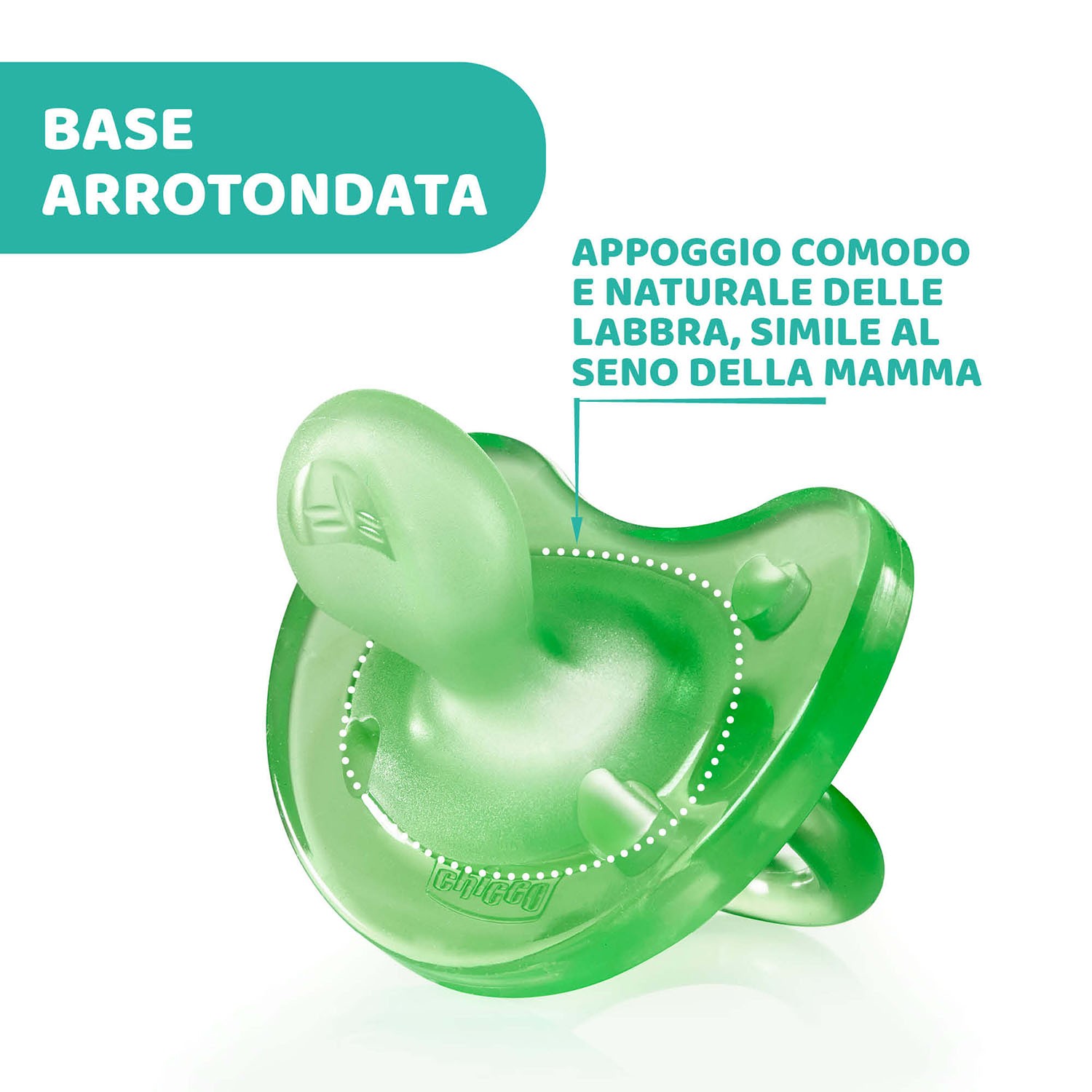 Il Gommotto Physio Soft di Chicco è il succhietto in silicone pensato per accompagnare il bambino nella fascia 6-12 mesi, favorendo il corretto sviluppo della bocca. Grazie alla sua esclusiva forma, aiuta a posizionare la lingua in avanti e sostiene la respirazione fisiologica. Estremamente morbido e delicato sulla pelle, non lascia segni e non disturba durante il sonno. La base sottile consente una naturale chiusura delle labbra, mentre la forma simile al seno materno stimola la suzione, aumentando la sensazione di comfort e morbidezza. Disponibile nei colori azzurro e verde.