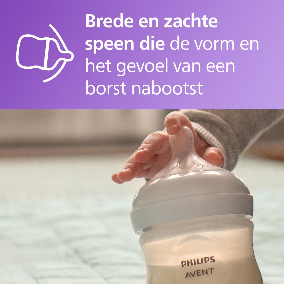 Il Biberon Philips Avent Natural Response da 330 ml con tettarella Flusso 4 è progettato per seguire il ritmo naturale di suzione del tuo bambino. La tettarella morbida e flessibile, a forma di seno, lascia passare il latte solo quando il bambino succhia attivamente, proprio come al seno. Quando il bambino si ferma per deglutire o respirare, il flusso di latte si interrompe. Questo rende facile combinare l'allattamento al seno con il biberon. Inoltre, il biberon è progettato per ridurre coliche e altri disagi, garantendo poppate tranquille e confortevoli. Il Flusso 4 (adatto a bambini di 3 mesi in su) offre una velocità maggiore per i bambini che sono più esperti con la suzione.