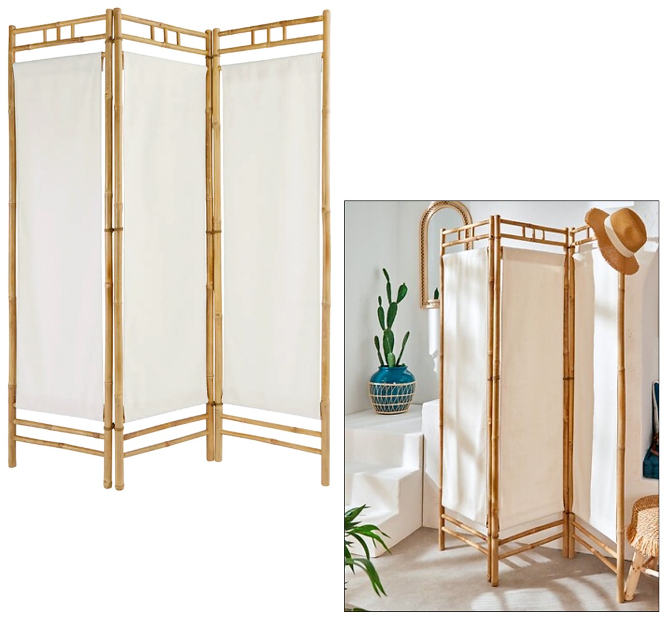 Paravento Kael con struttura in bambù naturale e tessuto bianco