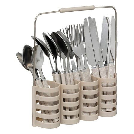 Set di posate 24 pezzi Geo in plastica con supporto beige