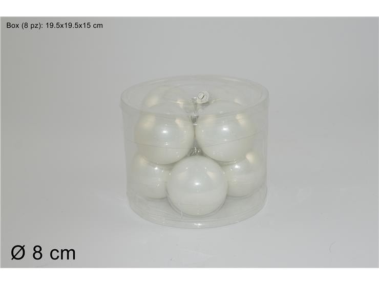 CONF 8 SFERE 59022 VETRO 8CM BIANCO PERL