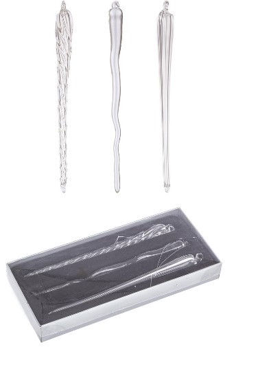 Set di 3 Pendentivi Natale Icicle in Vetro Trasparente 17,5cm, La Magia di Natale per Decorazioni Eleganti