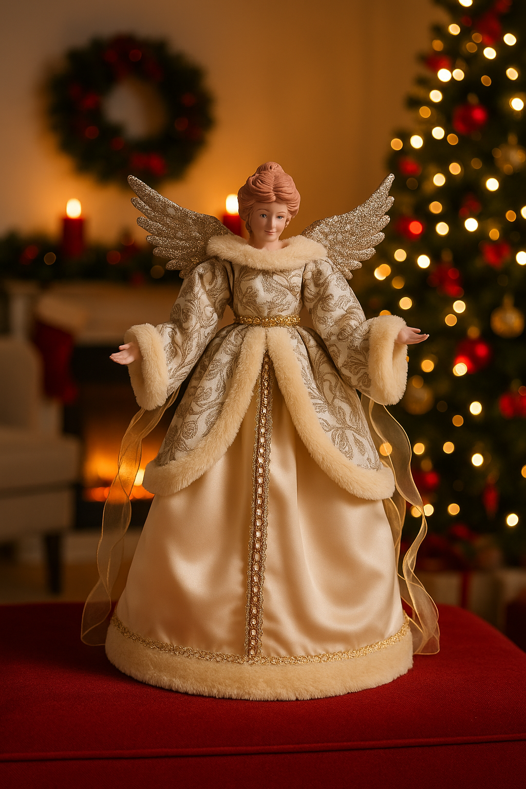 Il puntale di Natale angelo oro 35x15x42h è una decorazione scenografica che unisce spiritualità ed eleganza. Realizzato con dettagli raffinati e finitura oro, è pensato per coronare l’albero di Natale trasformandolo in un simbolo di armonia e tradizione. Grazie alle sue dimensioni importanti, diventa un vero protagonista delle feste, capace di arricchire la casa con fascino e significato.