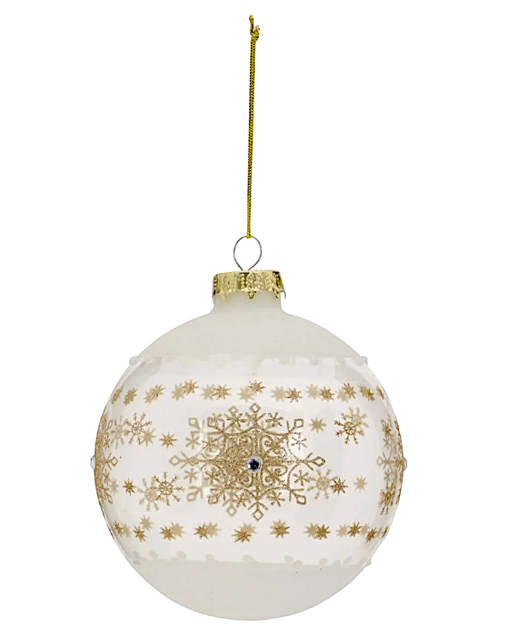 Decorazione sfera di Natale 10cm in vetro bianco/oro - La magia di Natale a casa tua