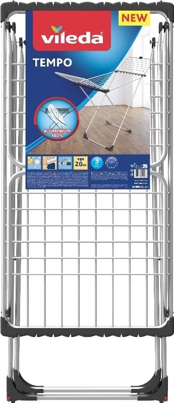 Il Stendipanni Doppio Tempo Vileda è la soluzione ideale per stendere il bucato in modo pratico ed efficiente. Con una struttura leggera ma resistente in alluminio, garantisce stabilità e durata nel tempo. Le ruote integrate permettono di spostarlo facilmente, anche da aperto, senza dover sollevare pesi.
