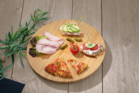 Il piatto girevole in bambù dal diametro di 50 cm è perfetto per servire pizze, antipasti, snack o dolci in modo pratico ed elegante. Realizzato in bambù resistente, combina leggerezza e durata, permettendo di ruotare facilmente il piatto per un accesso comodo a tutti gli ospiti. Ideale per uso quotidiano, buffet o cene conviviali, aggiunge un tocco naturale alla tavola.