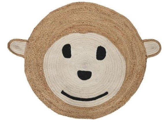 Tappeto Rotondo con Motivo Scimmia (Diametro 100 cm) - Materiale: Iuta/Cotone