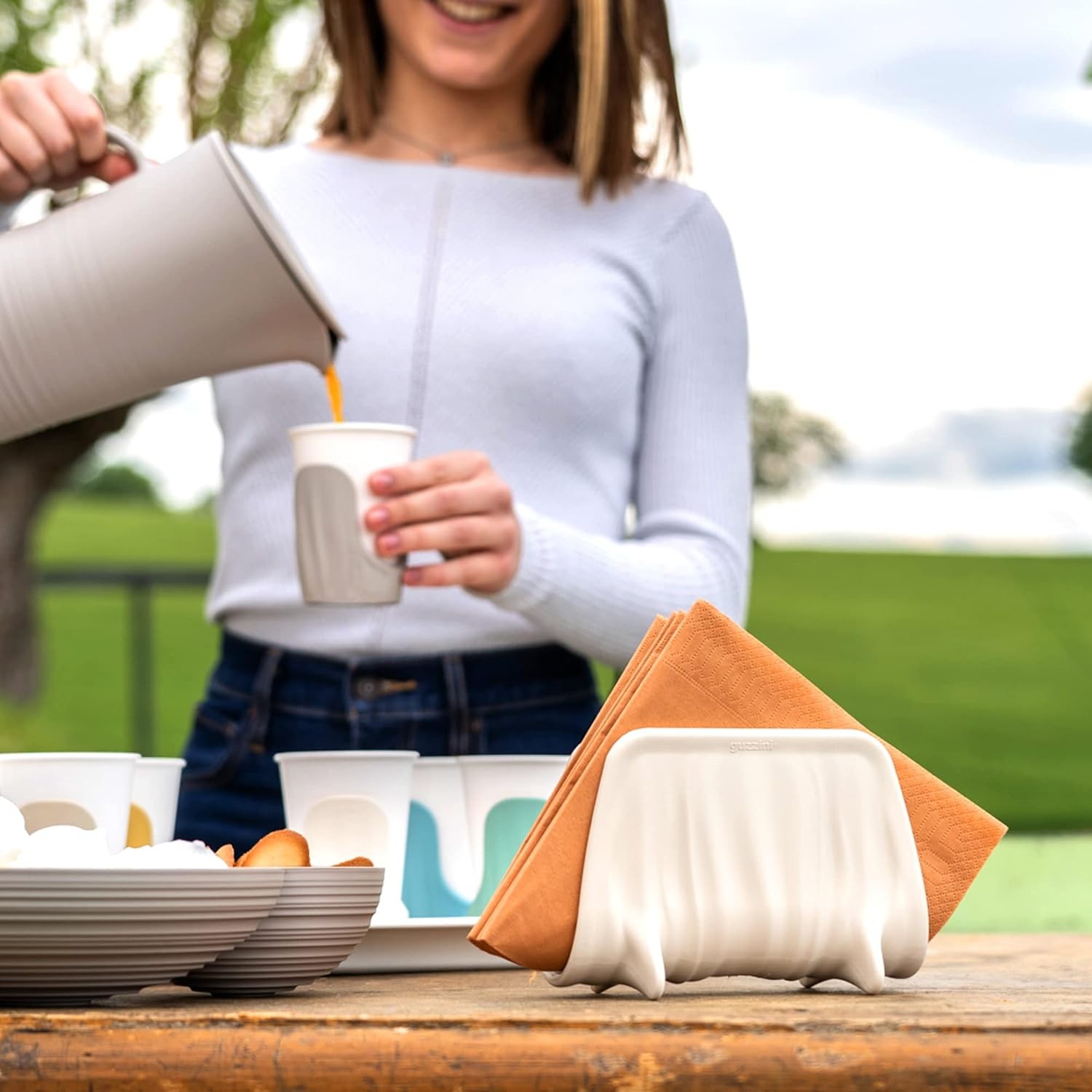 Il Portatovaglioli verticale Tierra Bianco Latte Guzzini è un accessorio pratico ed elegante, ideale per organizzare la tavola e la cucina con stile e sostenibilità. Realizzato in plastica riciclata 100% post consumo, proveniente da 2 flaconi da 1,5 litri usa e getta, rappresenta un impegno concreto verso il rispetto dell’ambiente. Le dimensioni compatte (16 x 8 x h11 cm) e la struttura verticale lo rendono un accessorio salvaspazio, perfetto anche per ambienti ridotti. Stabile grazie ai quattro piedini d’appoggio, è impilabile e facilmente lavabile in lavastoviglie con ciclo ECO o a max 50°C nel cestello superiore. Un prodotto Made in Italy che combina design, funzionalità e sostenibilità.