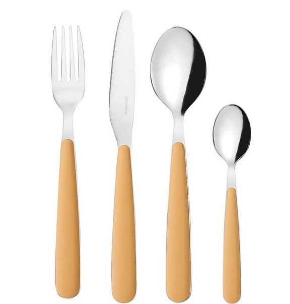 Posate colorate, allegre e accattivanti per un tocco di creatività nella tavola di tutti i giorni. L'acciaio inox percorre tutta la lunghezza della posata, creando il perfetto connubio fra acciaio e materiale plastico.
